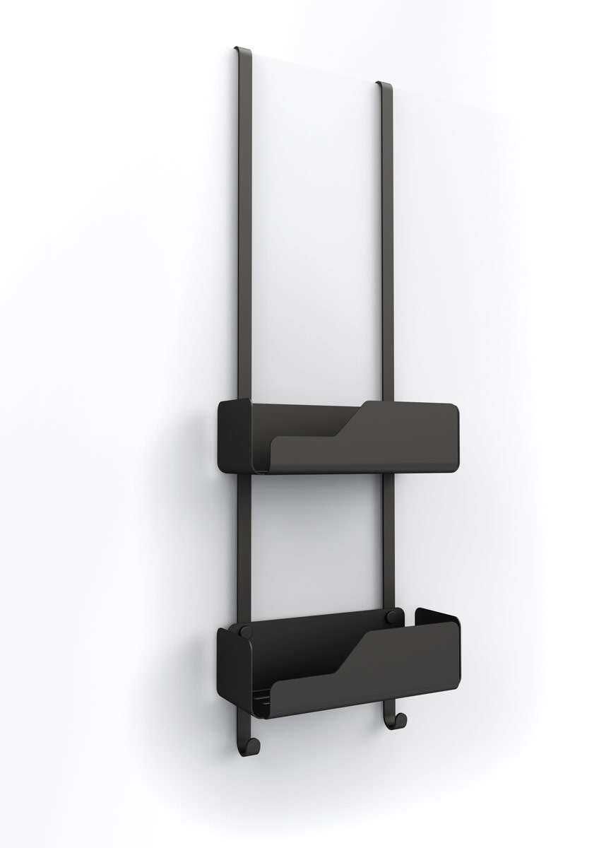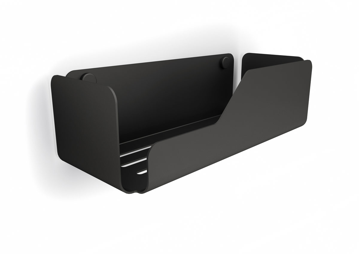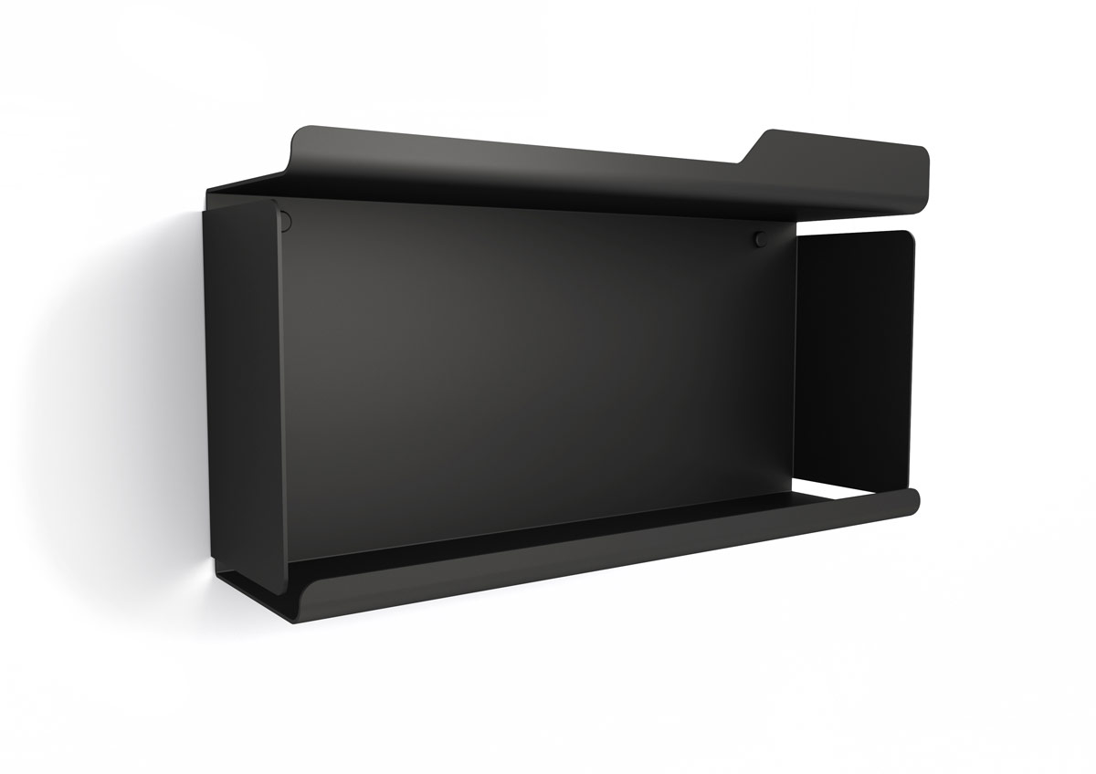 Box contenitore da appendere cm 45.6 x 10 x h 25.2 in acciaio verniciato epoxi nero opaco