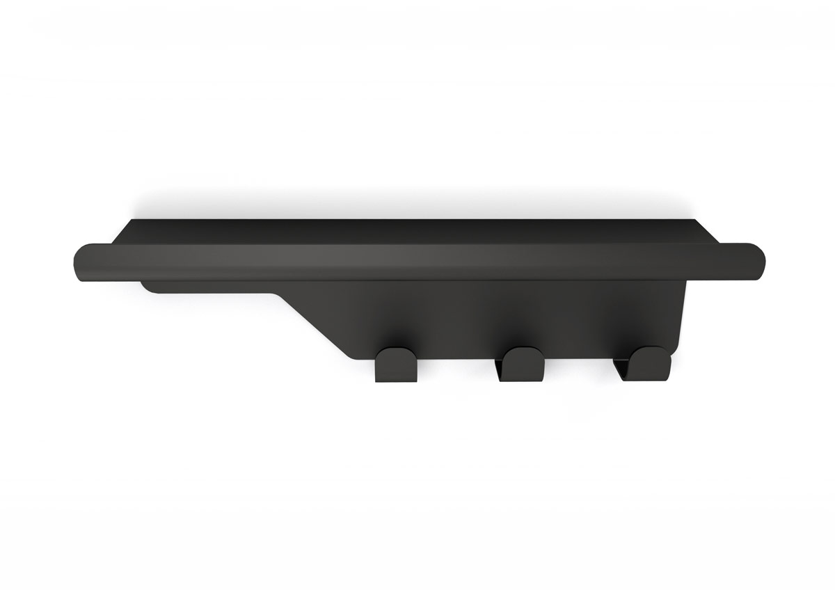Appendi abiti triplo con mensola cm 33 x 10 x h 11 in acciaio verniciato epoxi nero opaco