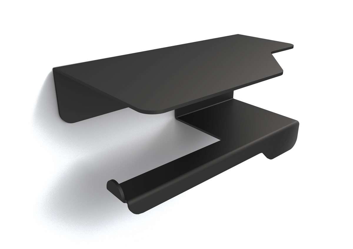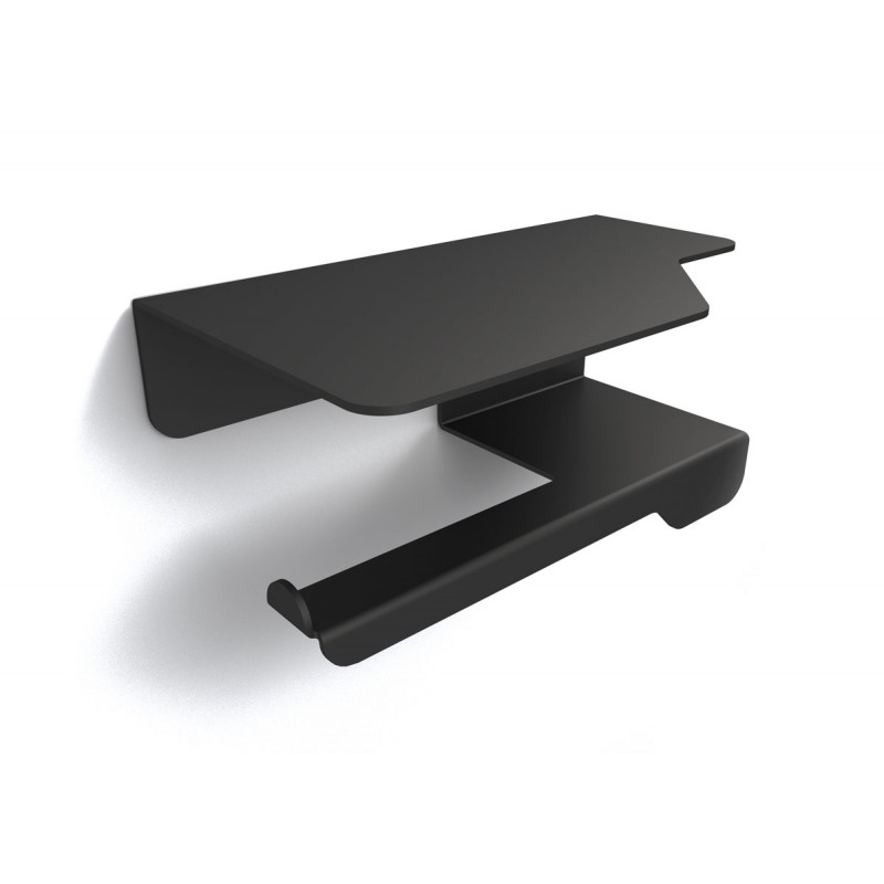 Portarotolo con mensola cm 33 x 10 x h 11 in acciaio verniciato epoxi nero opaco