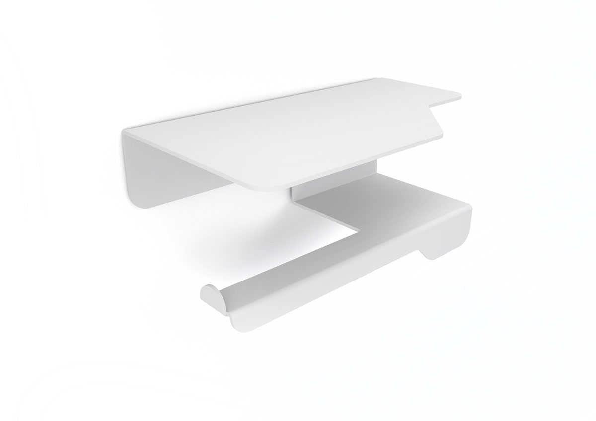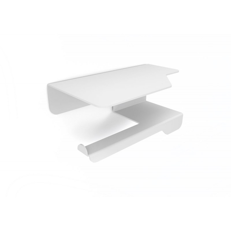 Portarotolo con mensola cm 33 x 10 x h 11 in acciaio verniciato epoxi bianco opaco